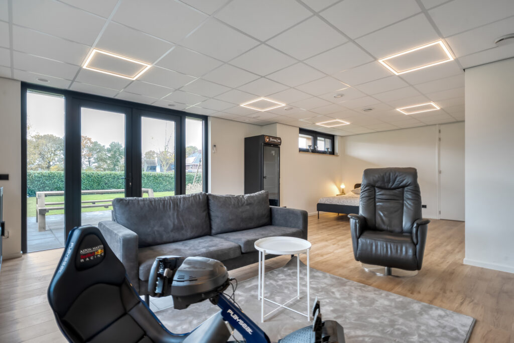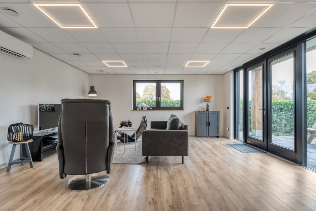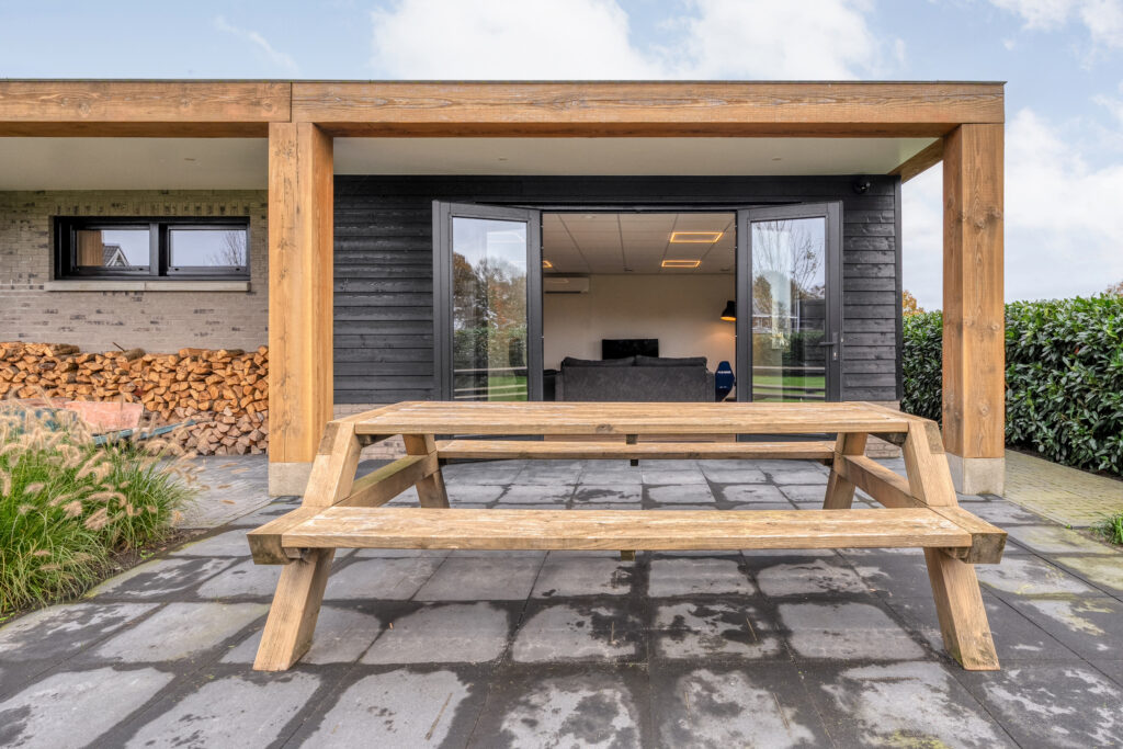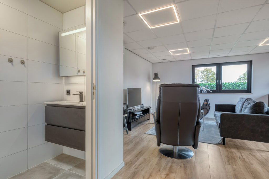 In de achtertuin bevindt zich bovendien het multifunctionele bijgebouw dat volledig is geïsoleerd en over eigen voorzieningen beschikt zoals een separaat toilet en een badkamer met douche en wastafelmeubel. De ruimte is volledig geïsoleerd en wordt verwarmd via airconditioning. Door alle voorzieningen is het bijgebouw volledig naar wens in te vullen. Denk aan gebruik als zorgwoning, kantoor aan huis, studio, of zelfs een sport- of hobbyruimte.