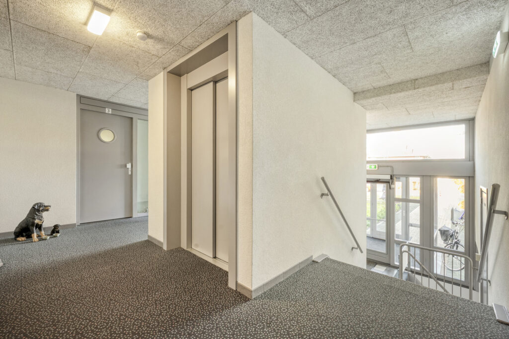 – Appartement op de eerste woonlaag, bereikbaar per lift;