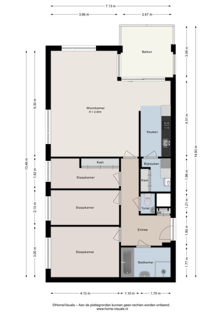 – Voorzien van drie slaapkamers;