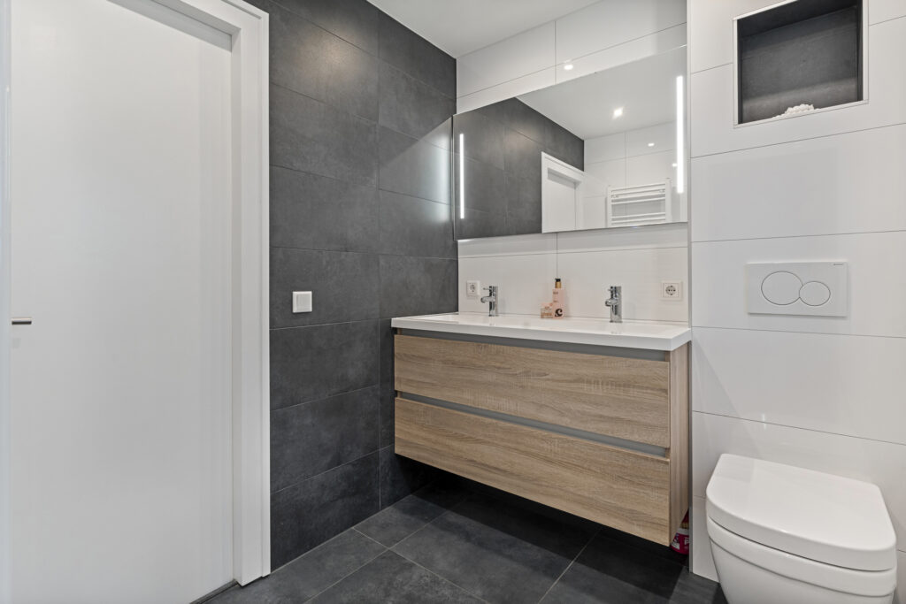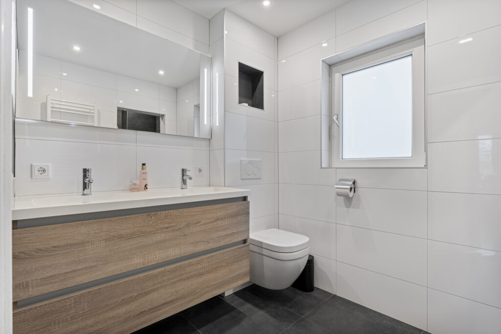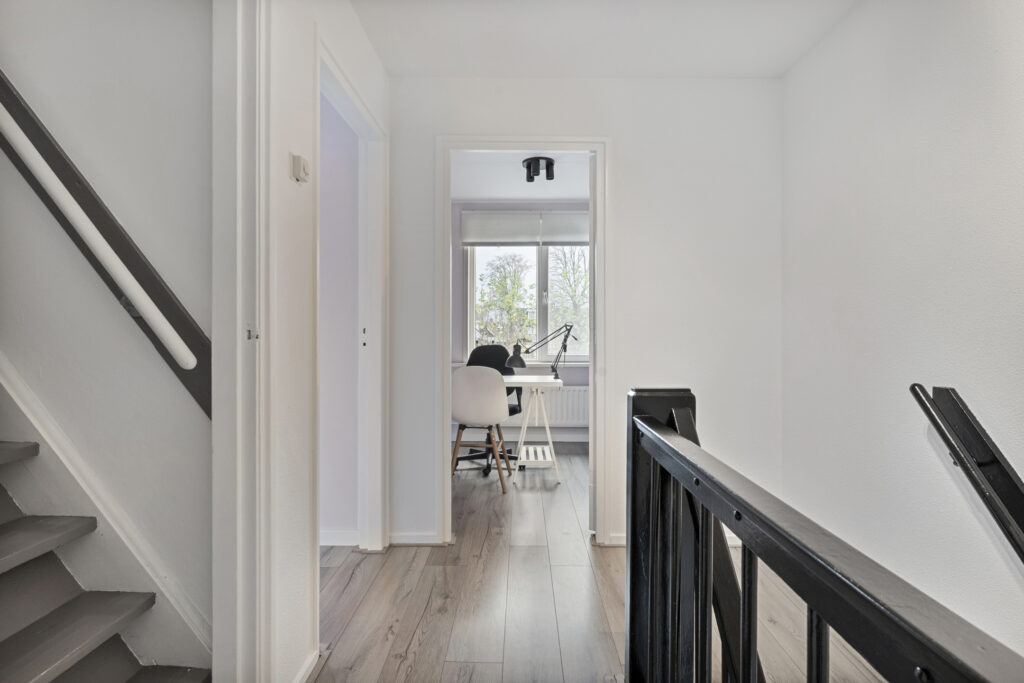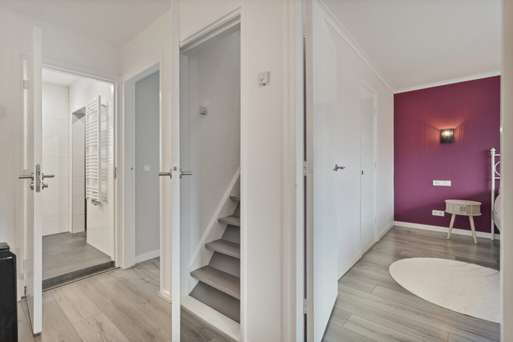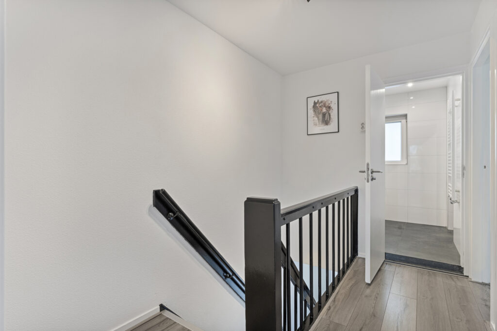 Eerste verdieping: Overloop met toegang tot de 3 slaapkamers en de badkamer. Ook geeft de overloop via een deur toegang tot de trapopgang naar de 2e verdieping. Slaapkamer 1 en 2 hebben allebei een vaste kast en de moderne badkamer uit 2020 heeft vloerverwarming, een designradiator, 2e toilet, wastafelmeubel met dubbele wastafel, een spiegel en een mooie ruime inloopdouche met een hand- en stortdouche.