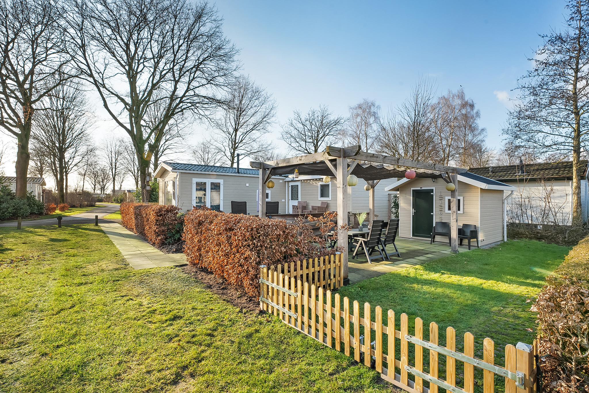 – Bij het chalet staat ook een berging/tuinhuis welke ideaal is om de tuinspullen in op te bergen. Daarnaast beschikt het tuinhuisje over een aansluiting voor de wasmachine.