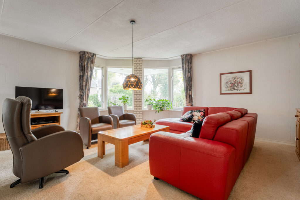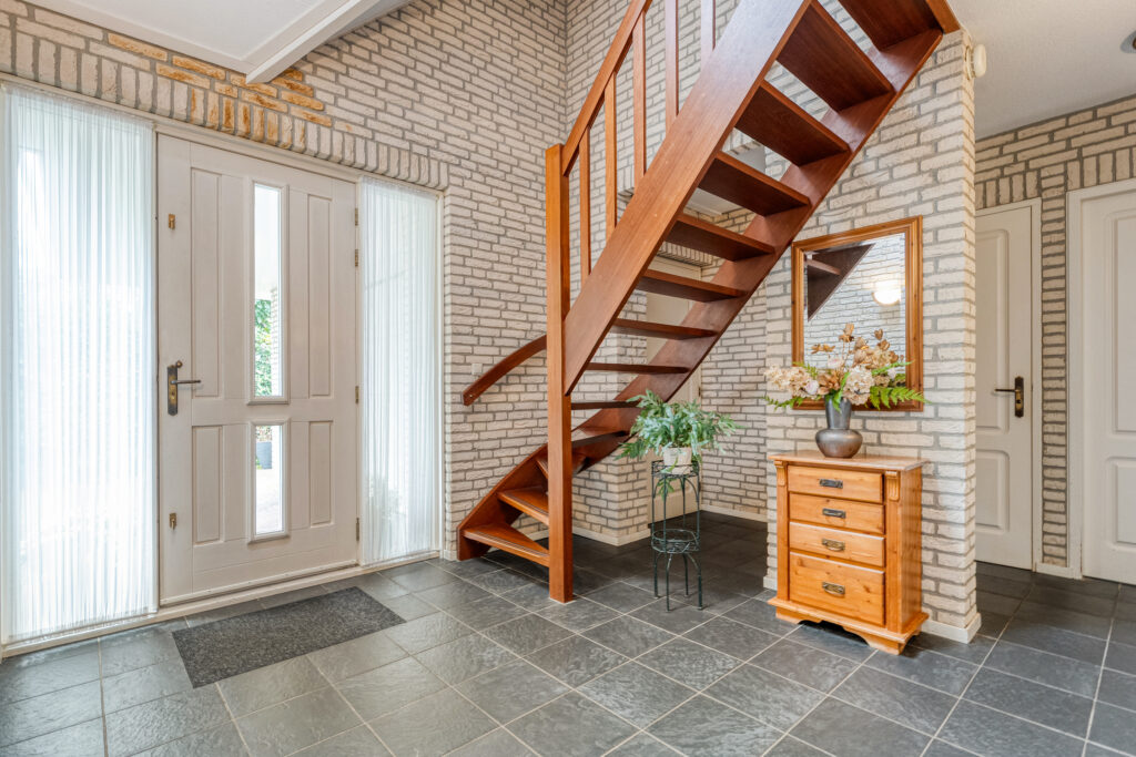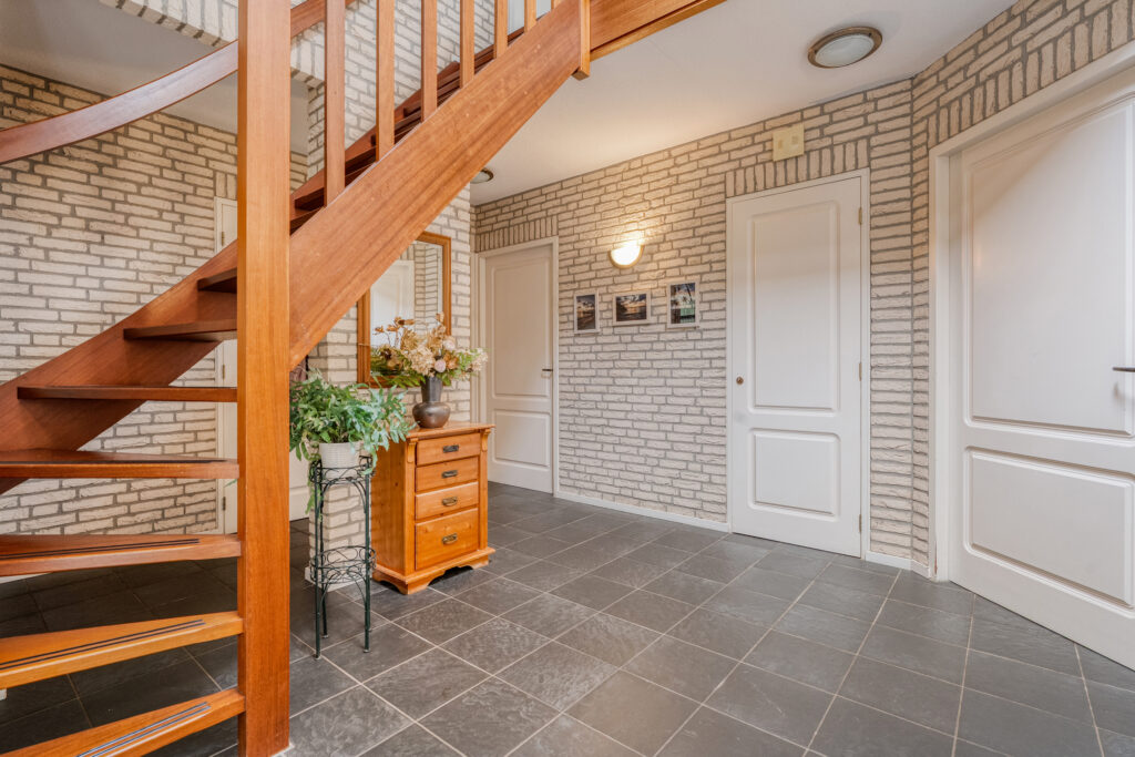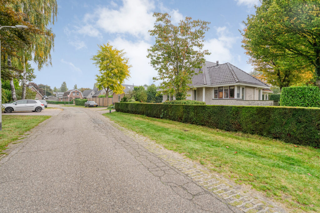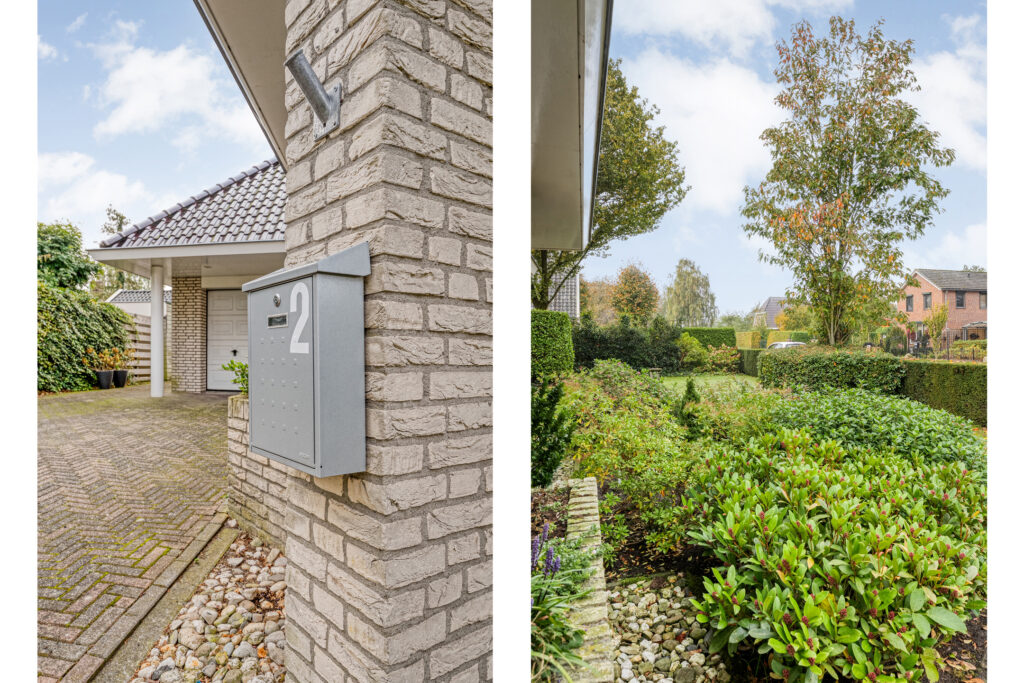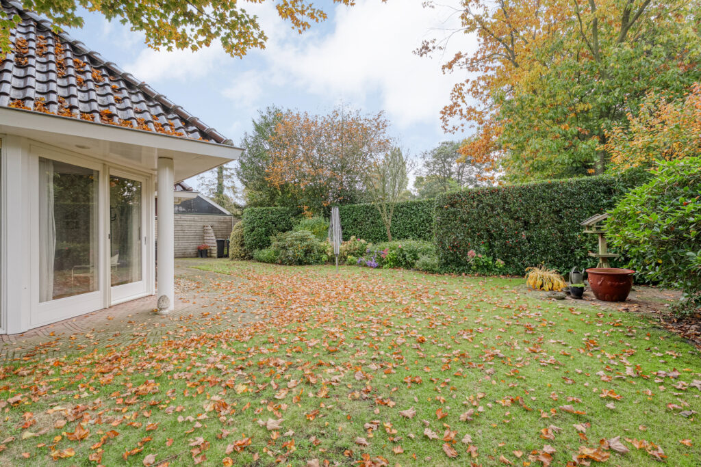 De woning staat op een ruim perceel met een verzorgde tuin rondom. De oprit biedt plaats aan meerdere auto’s en via de zijkant van het huis bereik je de achtertuin, waar je volop privacy en rust ervaart.