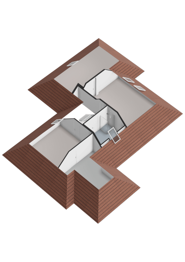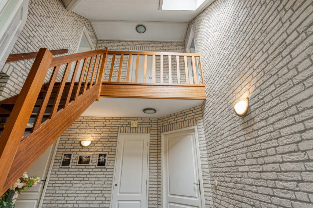 1e Verdieping: Via de vide heb je toegang tot de twee slaapkamers en de badkamer. De ruime 1e slaapkamer, gelegen aan de achterzijde van de woning, heeft twee dakramen en geeft toegang tot de 2e slaapkamer.