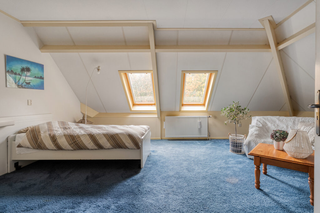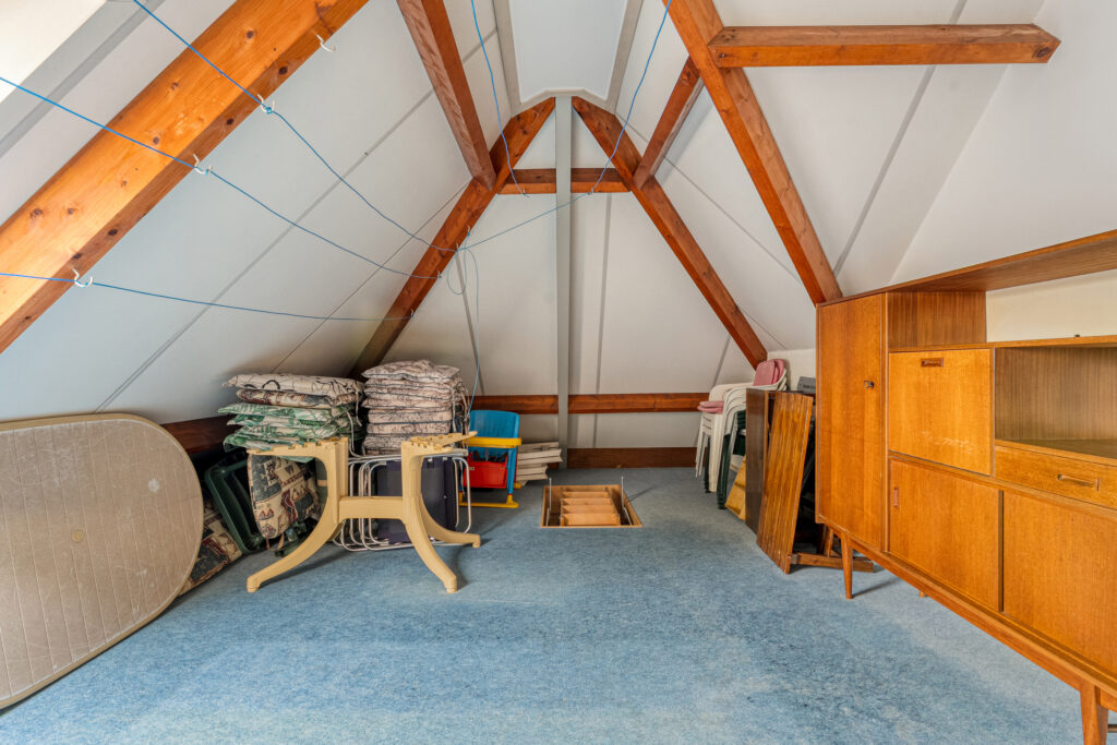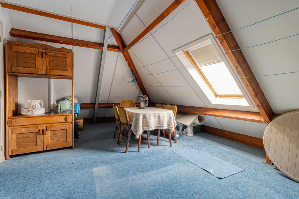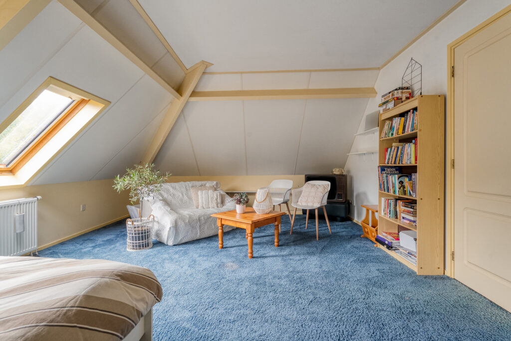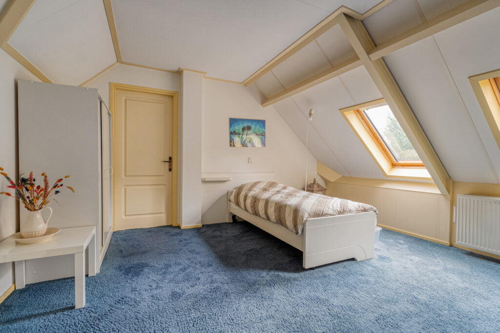De 3e slaapkamer is gelegen aan de voorzijde van de woning en geeft toegang tot de ruime berging, die voor verschillende doeleinden geschikt is. De 2e badkamer is v.v. een douchecabine, wastafel met spiegel en 3e toilet. Dankzij de rechte wanden en dakkapellen is er volop functionele ruimte, ook voor een groot gezin of werken aan huis.