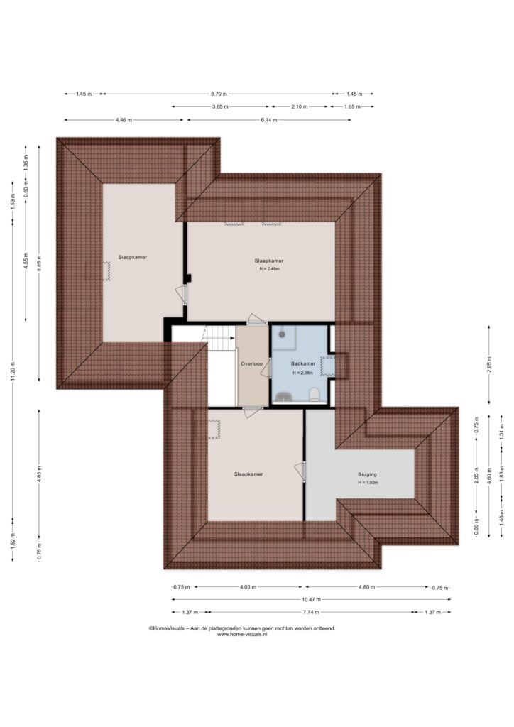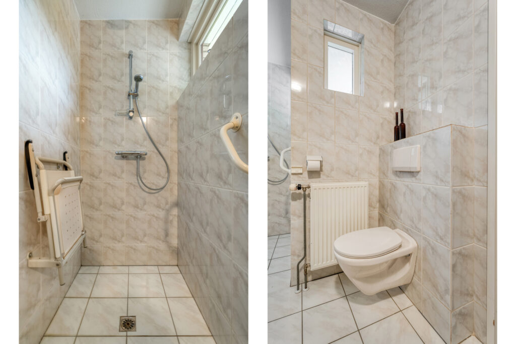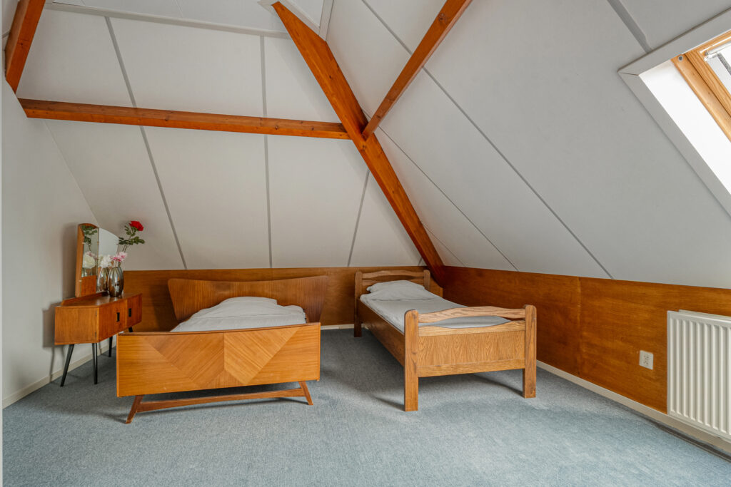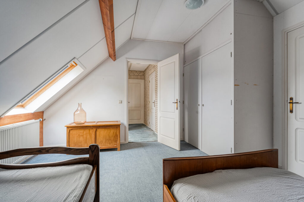 De 3e slaapkamer is gelegen aan de voorzijde van de woning en geeft toegang tot de ruime berging, die voor verschillende doeleinden geschikt is. De 2e badkamer is v.v. een douchecabine, wastafel met spiegel en 3e toilet. Dankzij de rechte wanden en dakkapellen is er volop functionele ruimte, ook voor een groot gezin of werken aan huis.