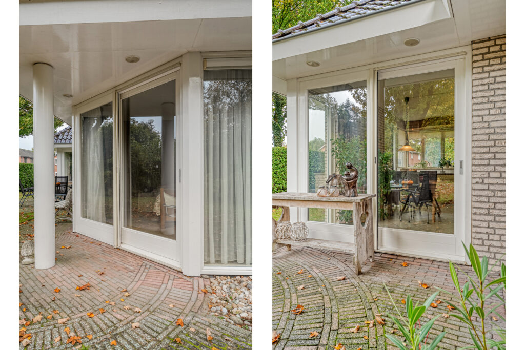 Begane grond: Je komt binnen via de overdekte entree, waarna je in een ruime hal met trapopgang en garderobe terechtkomt, die toegang geeft tot de meterkast, het toilet (wandcloset) met fontein, de woonkamer, de twee slaapkamers en de garage. De woonkamer is door de vele raampartijen heerlijk licht, is gelegen aan de voorzijde van de woning, met zicht op de rustige straat en heeft een gezellig gaskachel. Aansluitend vind je de ruime woonkeuken met hoekopstelling die beschikt over alle benodigde inbouwapparatuur waaronder een dubbele spoelbak, afzuigkap, kookplaat, vaatwasser, combi-magnetron, koelkast en vaatwasser. Tevens geeft de halfopen woonkeuken via schuifdeuren toegang tot de tuin en de bijkeuken. Via de bijkeuken met witgoedaansluitingen en extra bergruimte is ook de achtertuin bereikbaar. Op de begane grond zijn daarnaast twee slaapkamers aanwezig, waarvan één grenst aan de badkamer met 2e toilet (wandcloset), wastafelmeubel met wastafel en spiegel, inloopdouche en ligbad. Ook geeft deze slaapkamer toegang via schuifdeuren naar de tuin. Deze woning is ideaal voor wie gelijkvloers wil wonen.