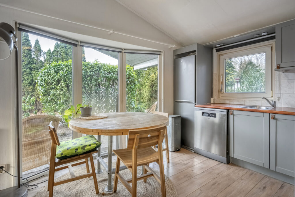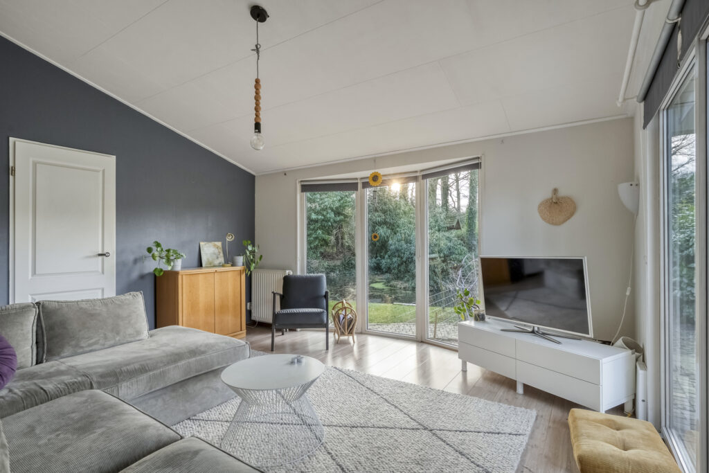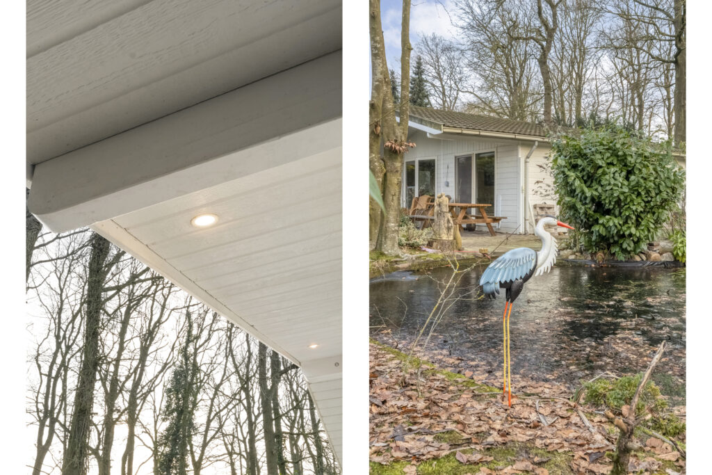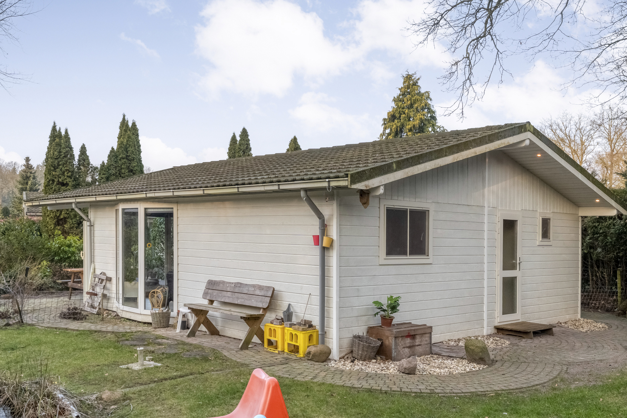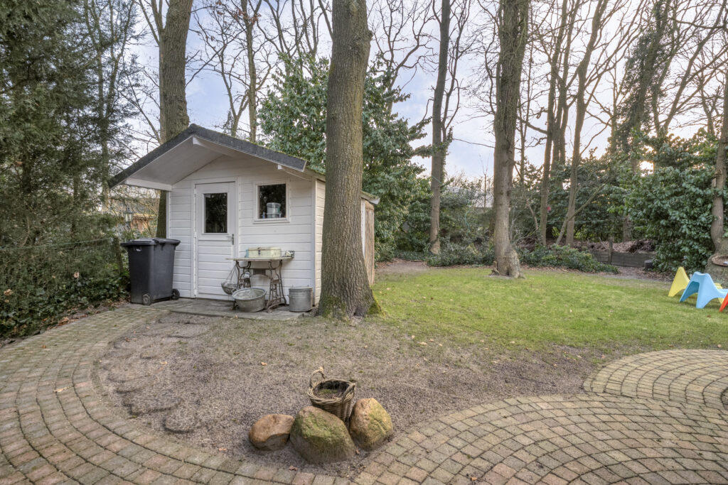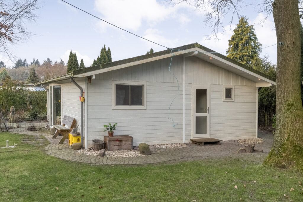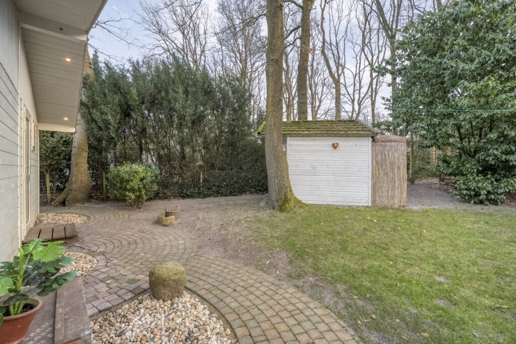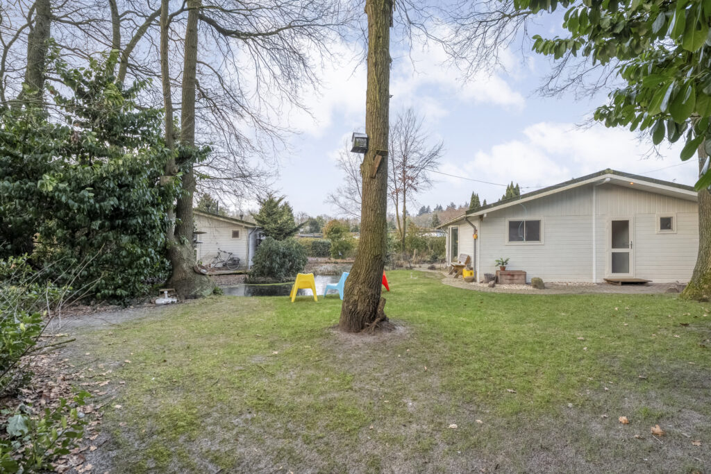De tuin rondom de woning is ruim en biedt veel privacy door de ligging aan de rand van het park. De eigen vijver en de vrijstaande houten berging maken het geheel compleet.