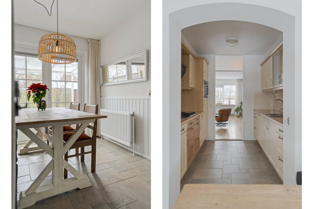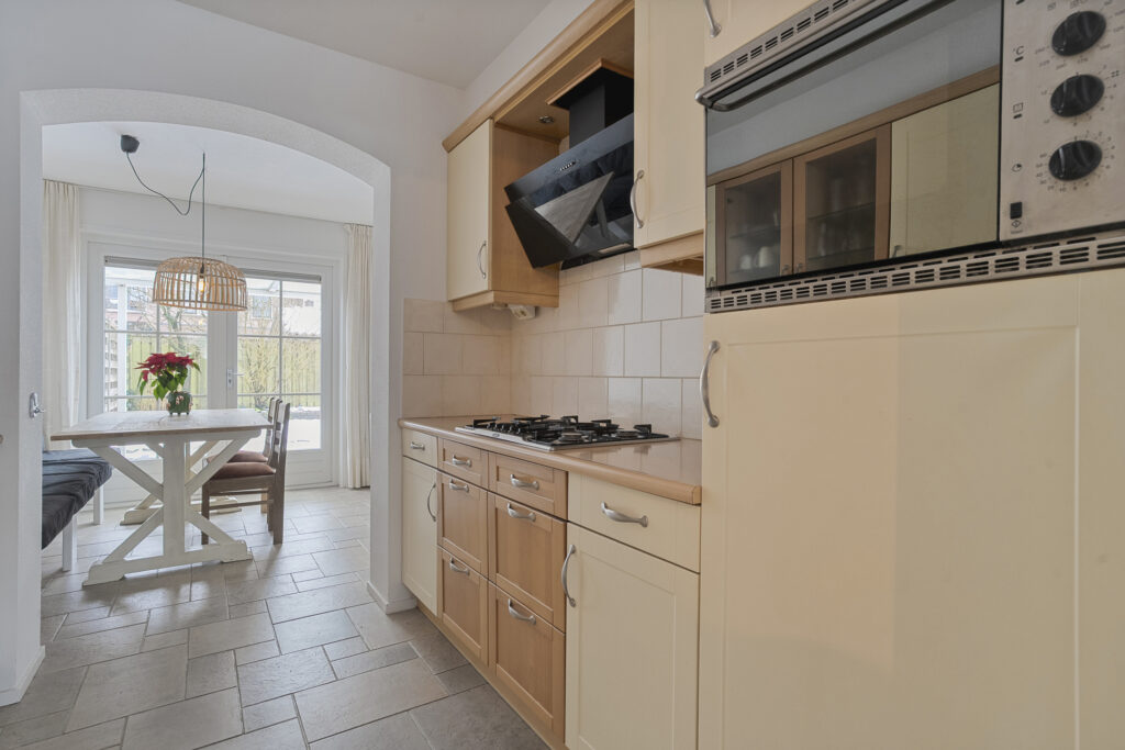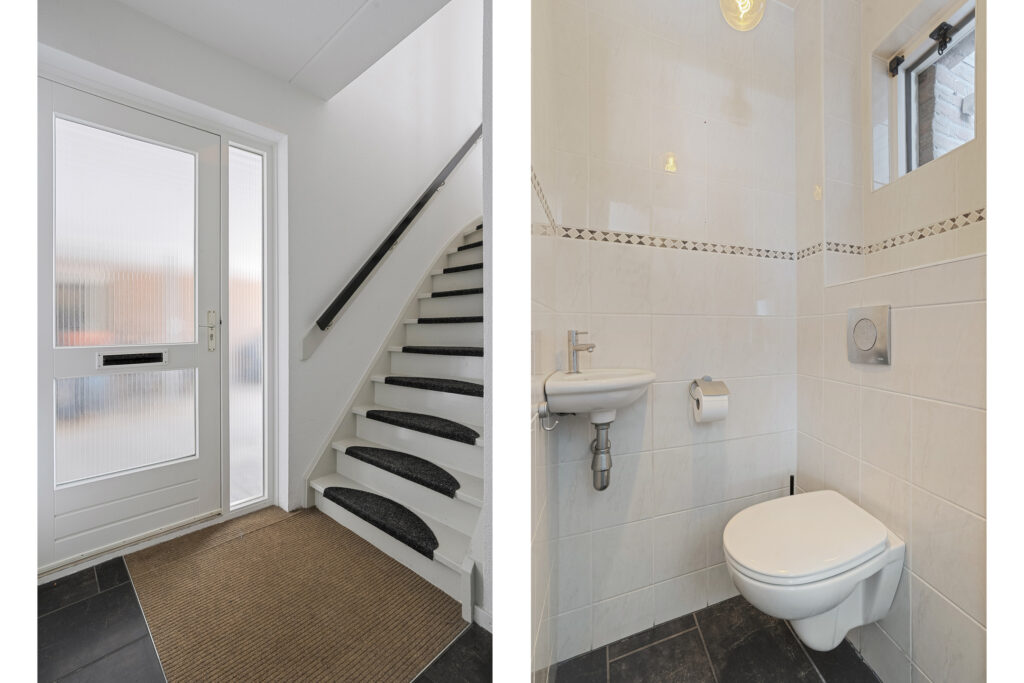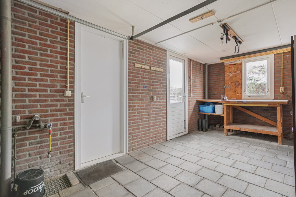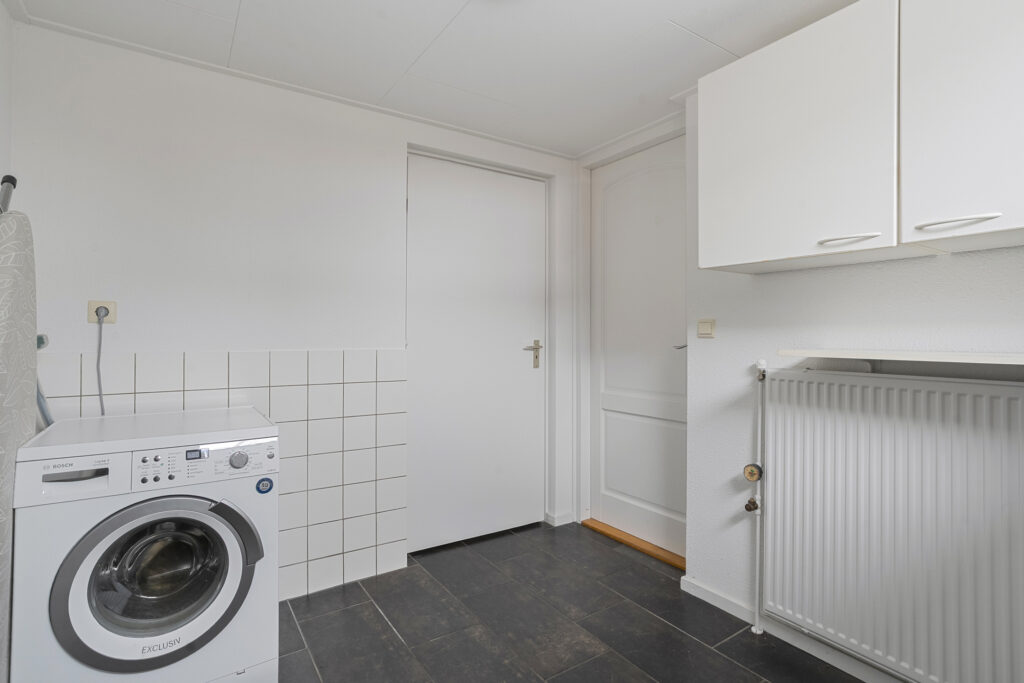 Begane grond: Entree/hal met trapopgang, meterkast en toilet met fontein, vanaf hier heb je toegang tot de woonkamer en de bijkeuken. De woonkamer is aan de voorzijde van de woning gelegen en is voorzien van een royale zithoek, airconditioning en een inbouwkast. Vanuit de woonkamer is de keuken te bereiken. De keuken beschikt over een dubbel aanrechtblad, gaskookplaat, afzuigkap, koelkast, vaatwasser, combi oven/magnetron en dubbele spoelbak. In het verlengde van de keukenopstelling vind je de aangebouwde eetkamer met openslaande tuindeuren naar het terras en loopdeur naar de bijkeuken. In deze ruimte is een aansluiting voor een wasmachine- of droger aanwezig en een binnendoor naar de garage. De garage heeft een water- en elektra aansluiting, via een loopdeur is de achtertuin en de oprit bereikbaar.