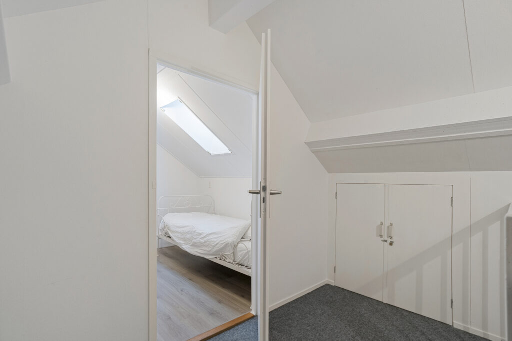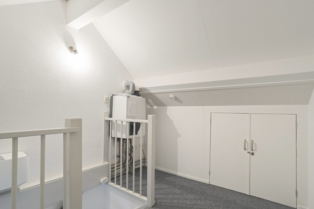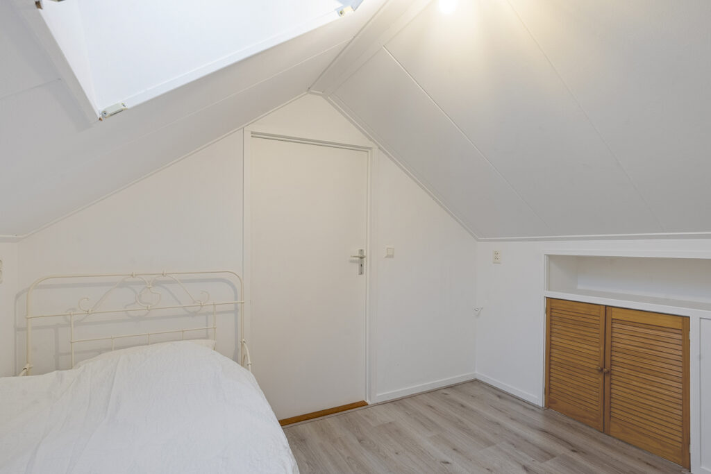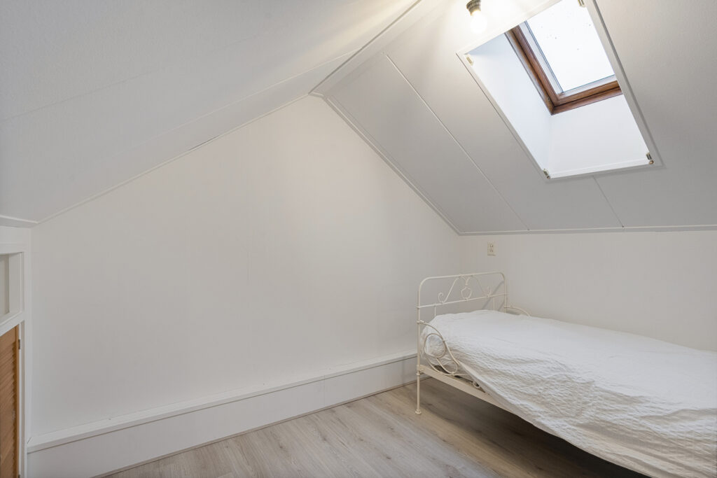 Zolder: Via een vaste trap is de zolderruimte met cv-opstelling bereikbaar. Via de overloop is de vierde slaapkamer bereikbaar, deze slaapkamer is voorzien van een Velux dakraam. Achter de knieschotten is er nog bergruimte aanwezig.