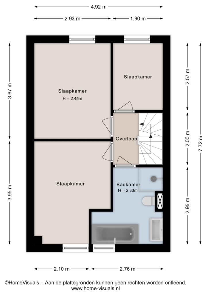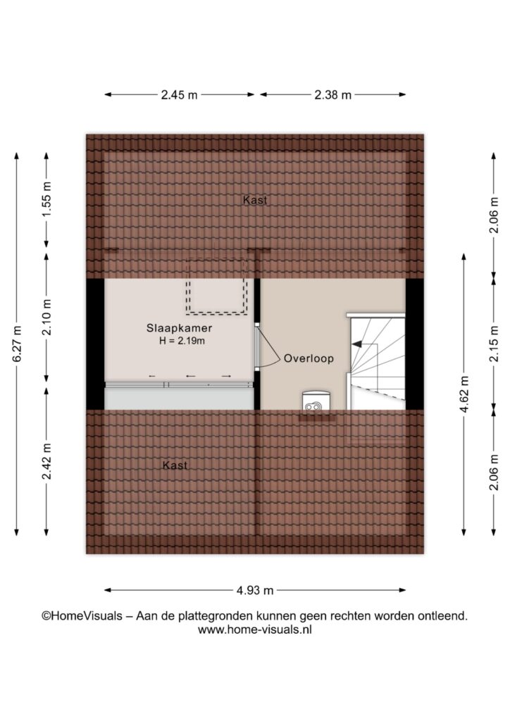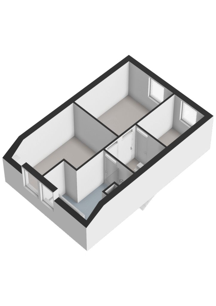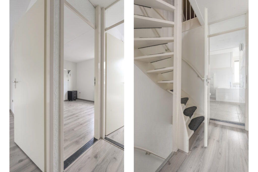 Tweede verdieping: Via vaste trap te bereiken tweede verdieping. Overloop met CV installatie en de wasmachine aansluiting, bergruimte achter de schuine wanden en toegang tot de vierde slaapkamer. Deze slaapkamer heeft een dakraam en een schuifwand voor de vaste kast.