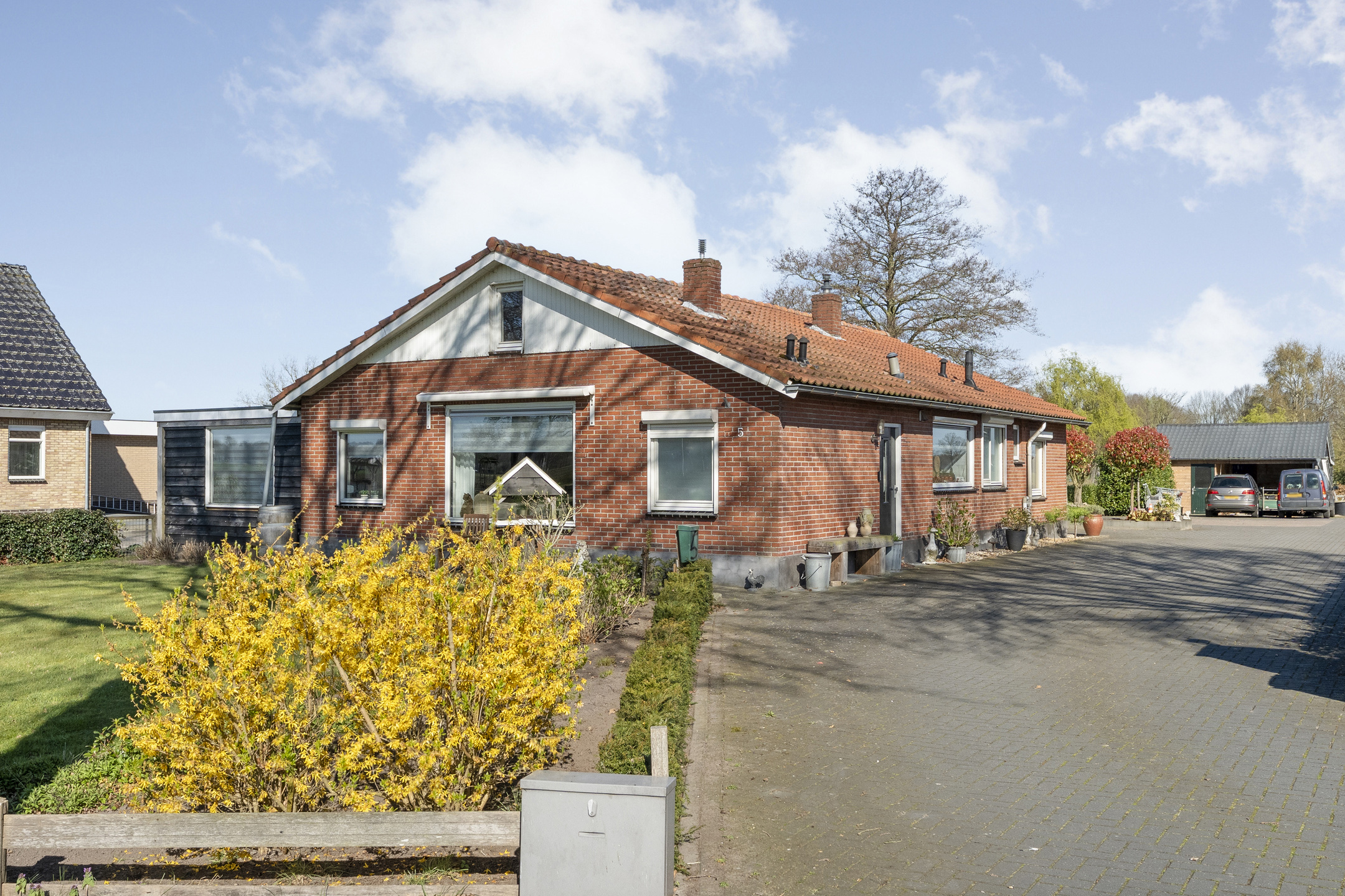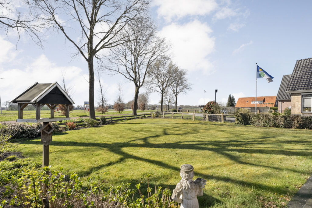 Buiten: het royale perceel biedt volop ruimte om te genieten van het buitenleven. Voor de woning ligt een groot gazon met daaromheen diverse beplanting. Naast de woning ligt een lange oprit met ruimte voor meerdere auto’s.