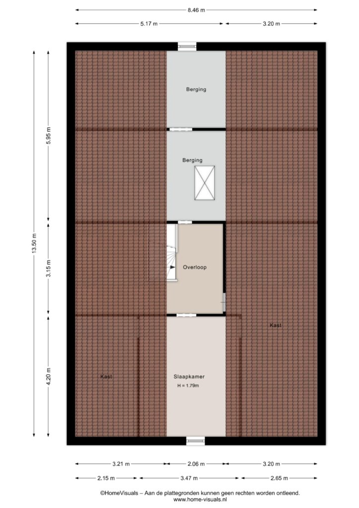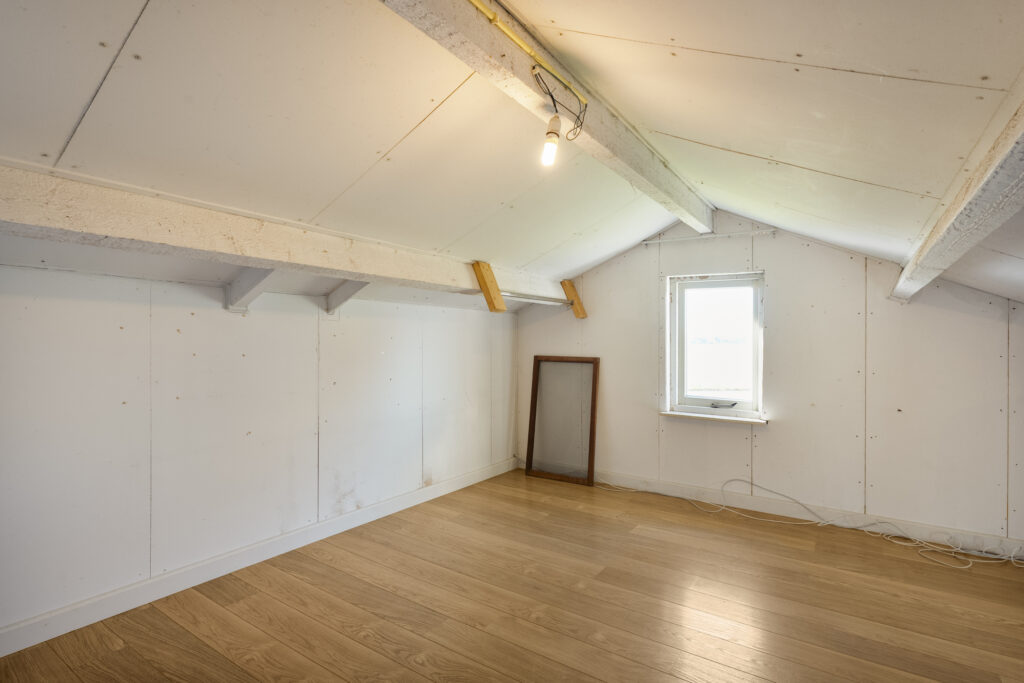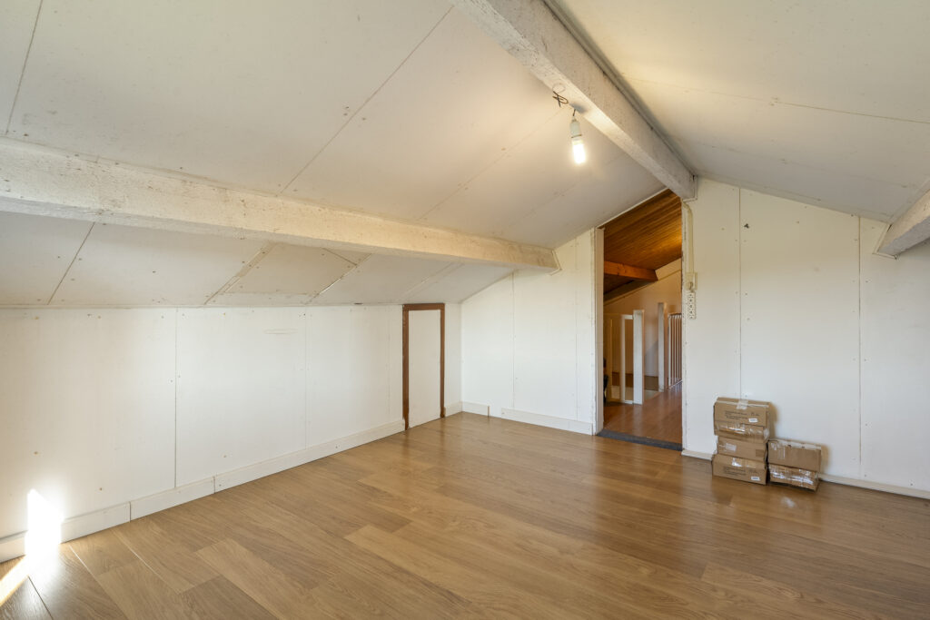 Eerste verdieping: de eerste verdieping bestaat uit een viertal ruimtes die middels open doorgangen met elkaar in verbinding staan. Perfect als bergruimte!