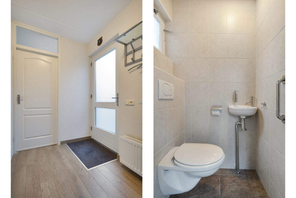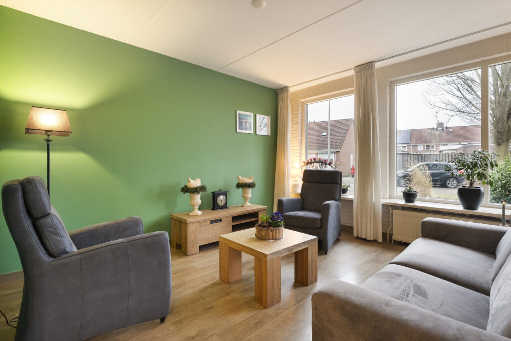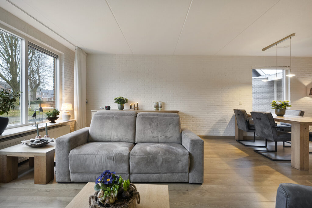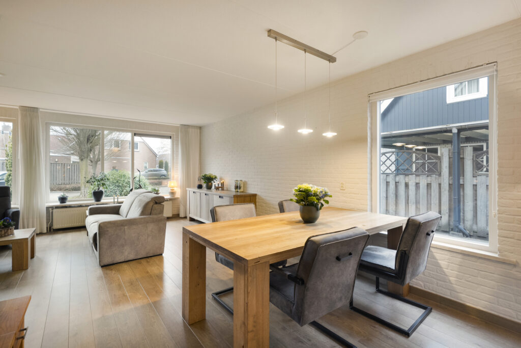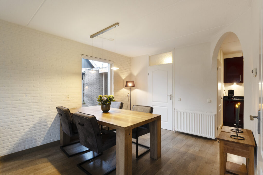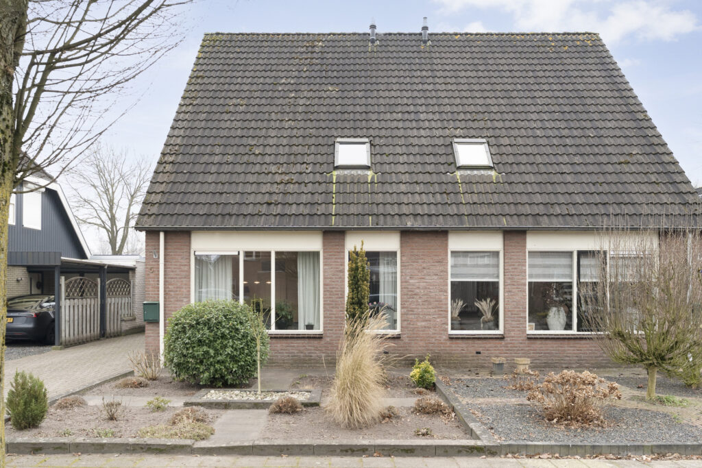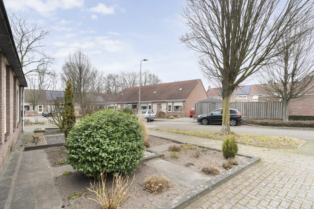 Buiten: Achtertuin op het zuiden met overkapping en fietsenberging. Via de achtertuin is de garage bereikbaar welke is voorzien van elektra een loopdeur en een kanteldeur. De aangebouwde carport is van 2019 en voorzien van inbouwspots.