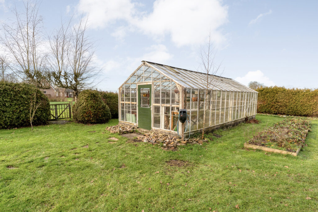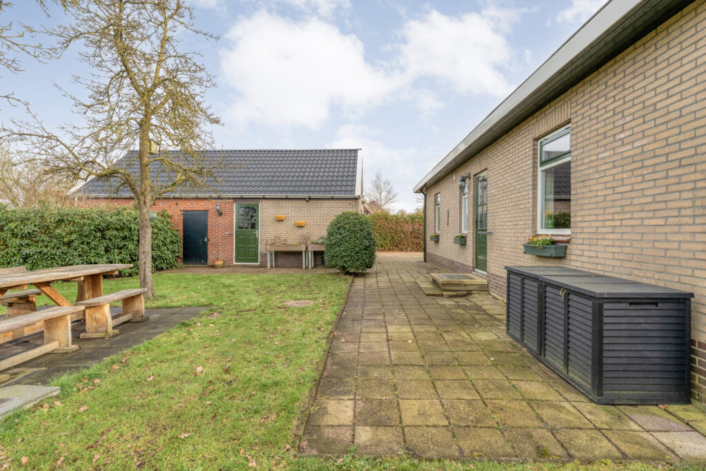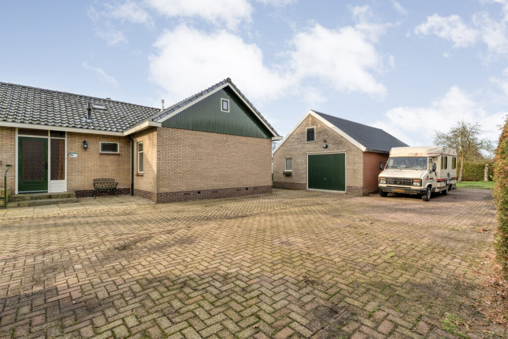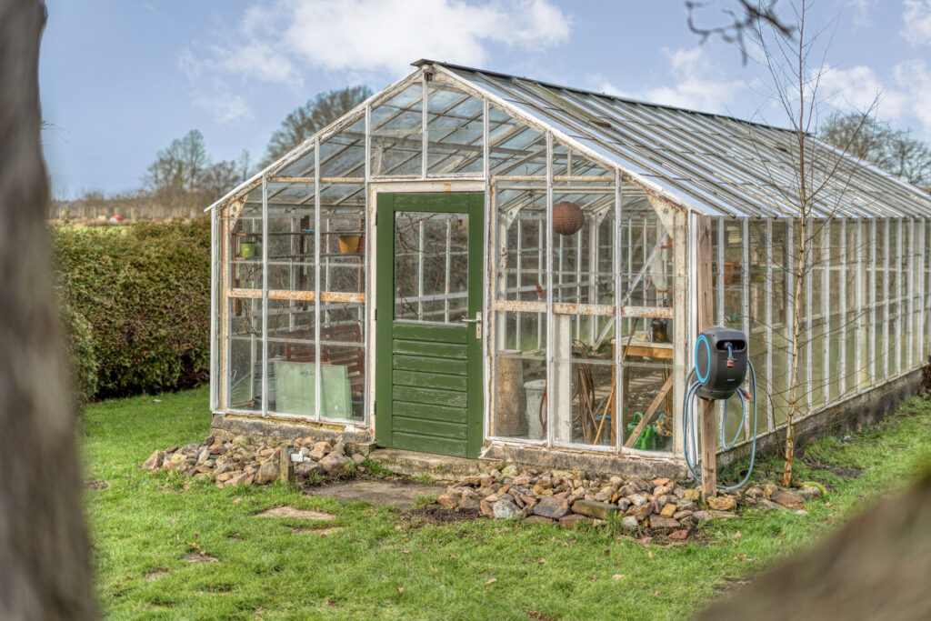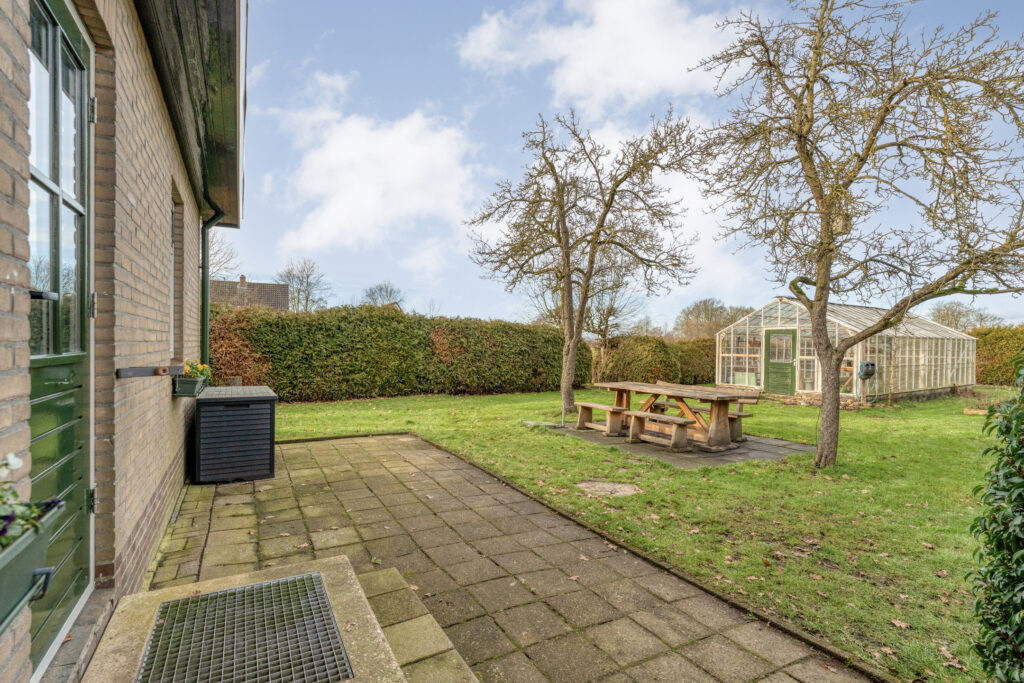 Buiten: Gelegen op een groot perceel met een vrijstaande stenen garage welke is voorzien van een kanteldeur, vliering, veel bergruimte en een (aardappel)kelder. In de achtertuin staat een grote kas, ideaal voor een tuinliefhebber met groene vingers! Het weiland leent zich uitstekend voor het houden van kleine dieren.