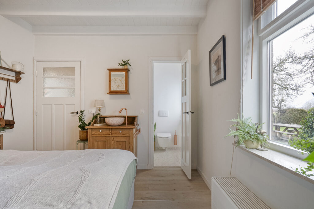 Via de woonkeuken zijn de 3 slaapkamers bereikbaar. Alle slaapkamers hebben een wateraansluiting, twee slaapkamers hebben een eigen wastafel en één slaapkamer heeft toegang tot de badkamer. De badkamer is voorzien van vloerverwarming en heeft een inloopdouche, designradiator en toilet.