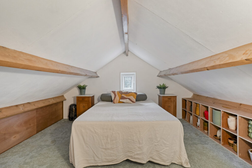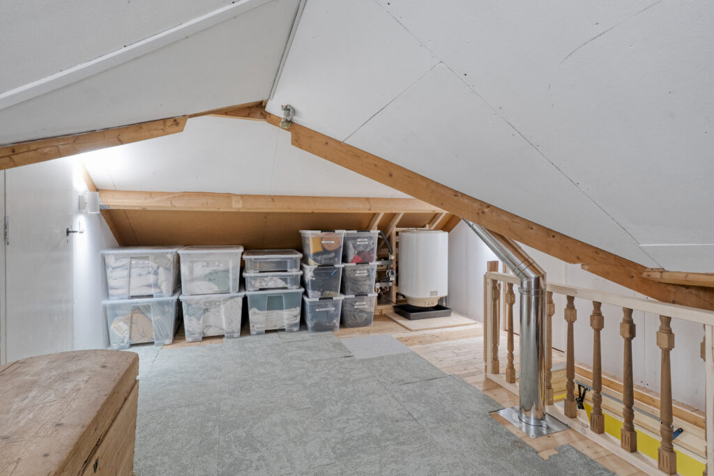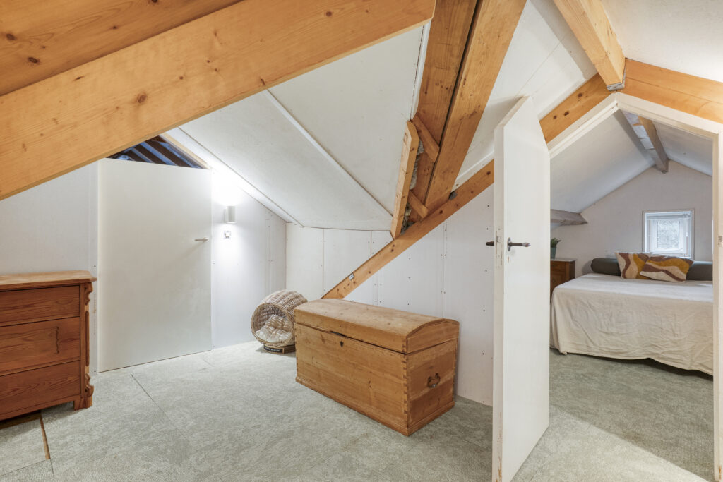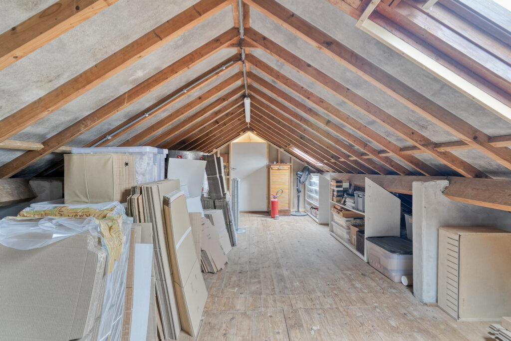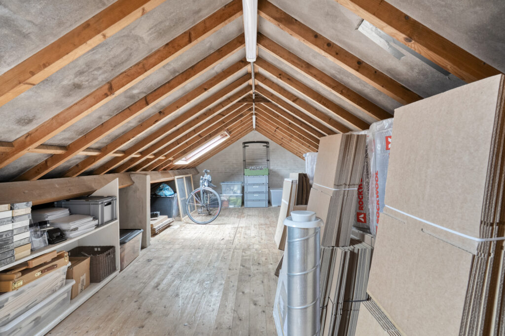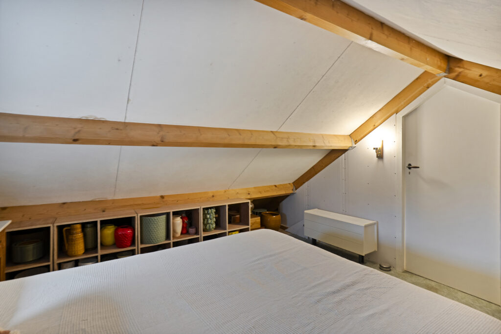 Eerste verdieping (via vlizotrap): Overloop met toegang tot een (mogelijke) slaapkamer en een open royale zolder met veel bergruimte.