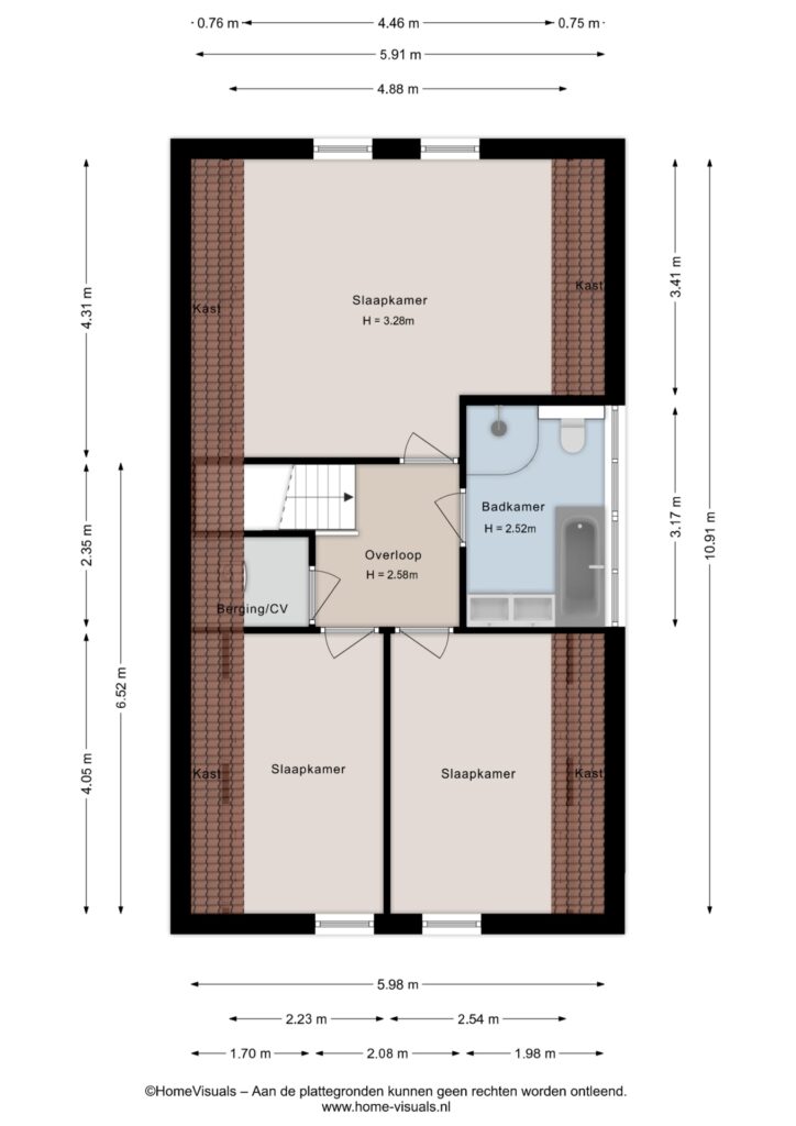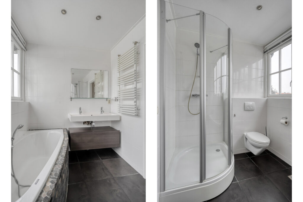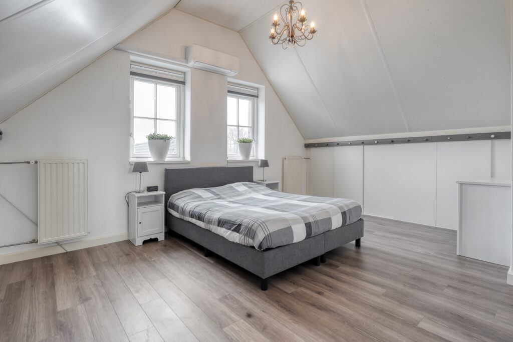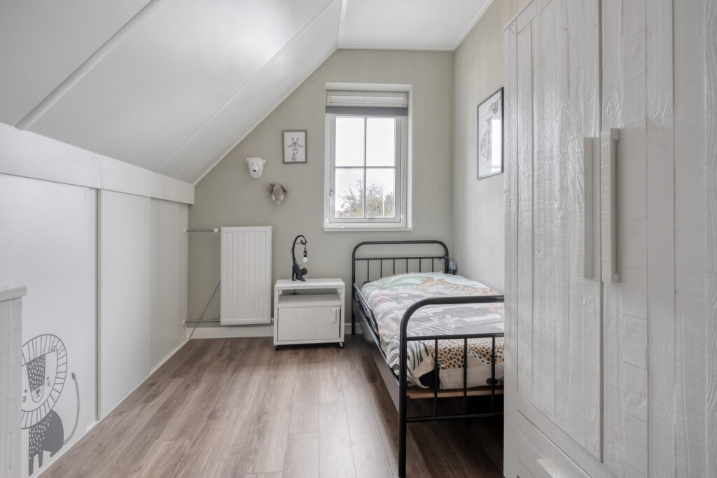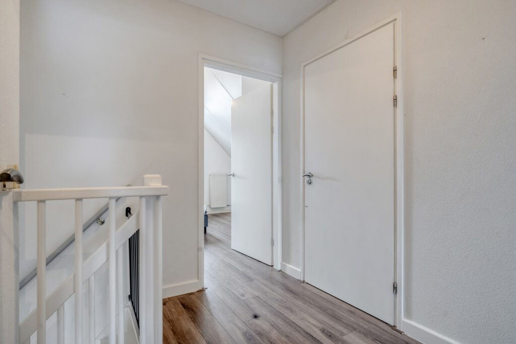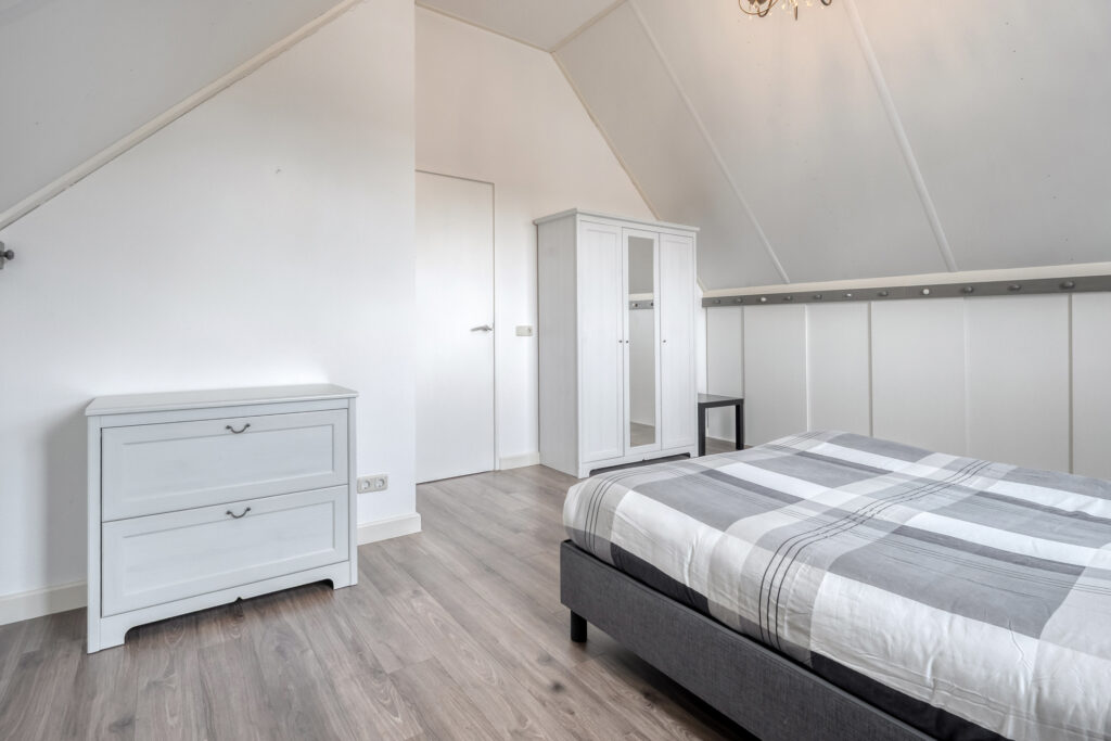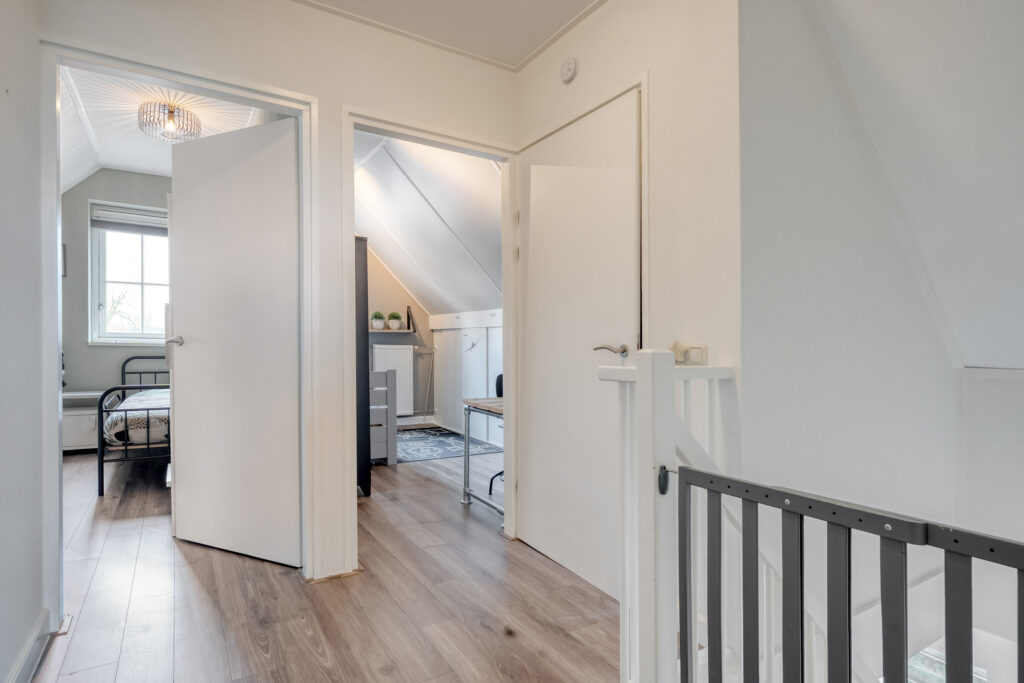 Eerste verdieping: vanaf de overloop is er toegang tot een drietal ruime slaapkamers, een stookruimte met de CV-combiketel en een riante badkamer met dakkapel. Elke slaapkamer beschikt over veel praktische bergruimte achter de knieschotten. De badkamer is voorzien van een douche, dubbele wastafel, ligbad en een toilet. Middels een losse trap is de vliering te bereiken.