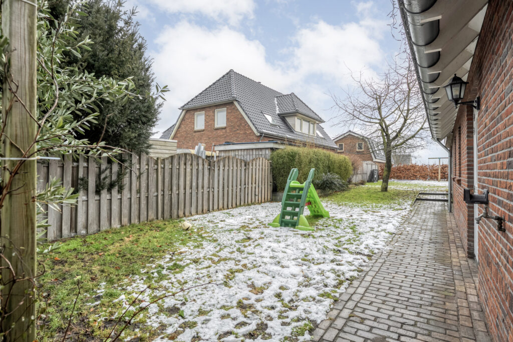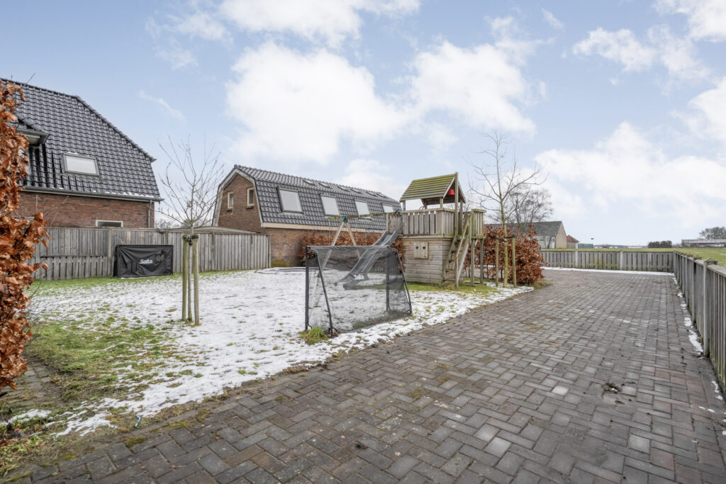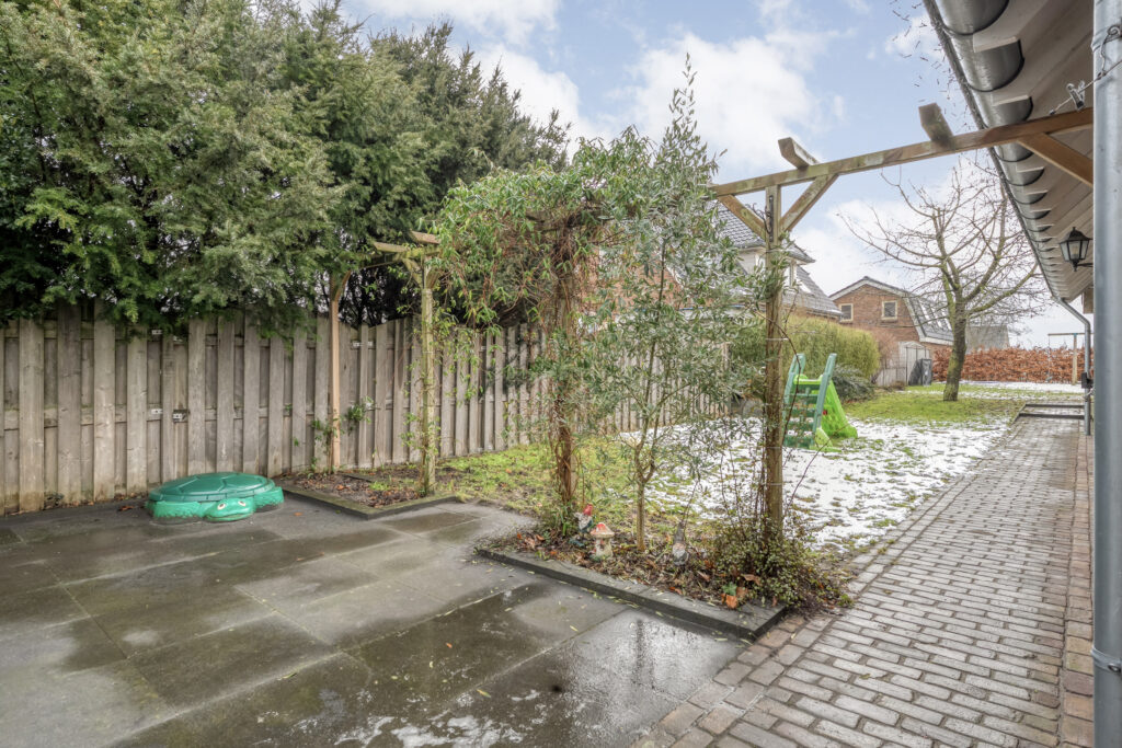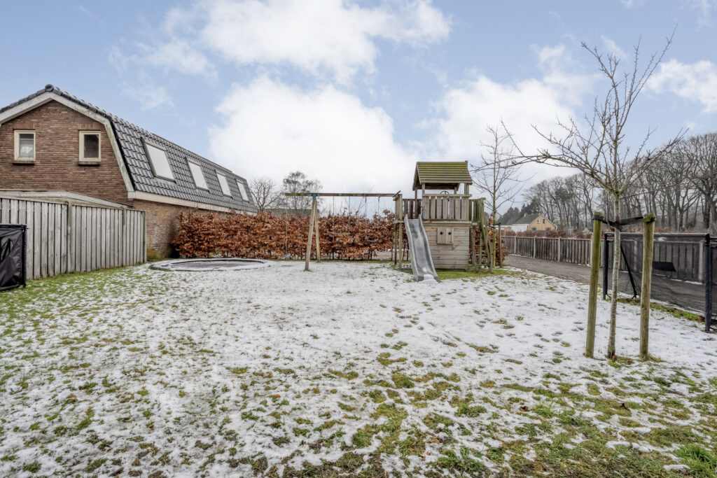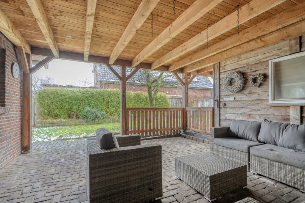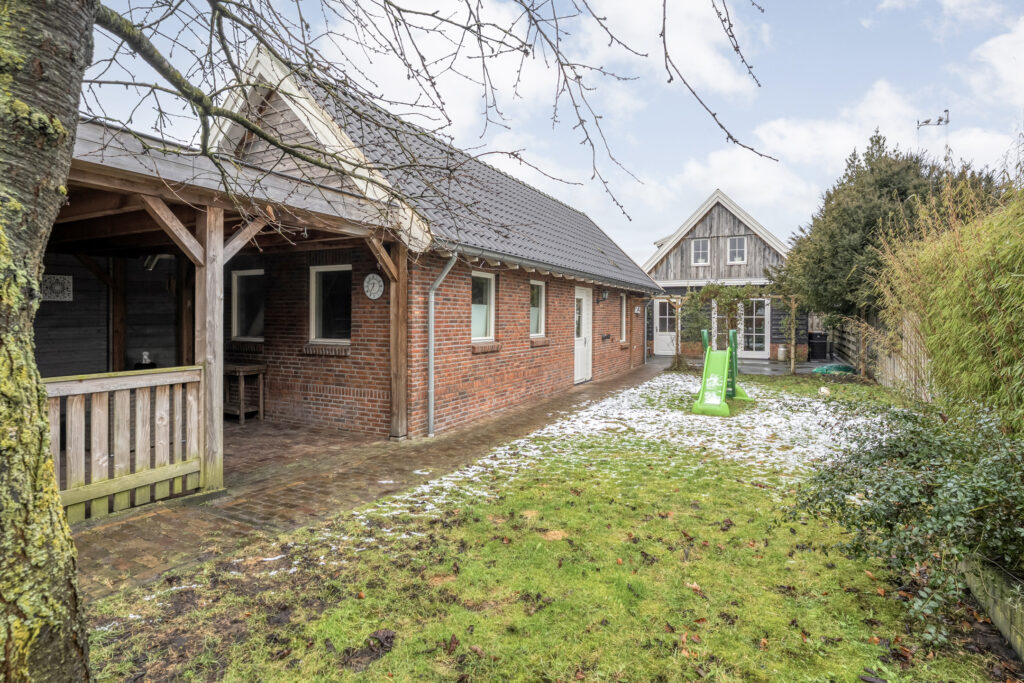 Direct achter de woning ligt een breed terras met een plantenborder en daarachter een groot gazon. In het verlengde van de schuur bevindt zich een tweede, houten berging met fraaie overkapping. Hier kun je heerlijk zitten!